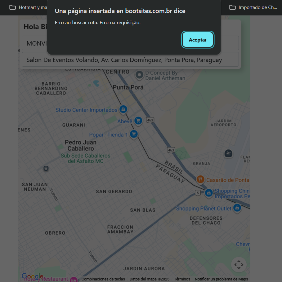 Boa noite Professor, baixei o projeto Mini app Mobilidade 2.0, coloquei minha chave api e alterei o numero do celular whatsapp, só que quando acesso o link e coloco a origem e o destino da corrida, esta dando a seguinte mensagem: